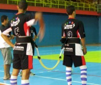 Primeiramente, o uso deste cinto exige dois participantes. Cada um veste um cinturão ajustável na região do core.
