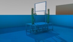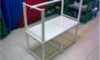 Esta peça foi executada para o cliente Thales, inclusive ela está em uso! Quando a plataforma tem sua altura muito maior que a medida da largura ou do comprimento, há um deslocamento do centro de gravidade da peça para uma posição menos estável que a ideal. Nestes casos, recomendamos que a plataforma seja acompanhada de uma ancoragem. No caso pode ser utilizado um par de barras que manterão a plataforma presa na borda, eliminando qualquer eventual instabilidade que possa ter. A plataforma em tela não precisou da ancoragem, ou seja, nesta medida ficou satisfatoriamente estável.