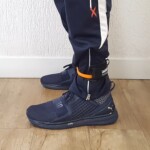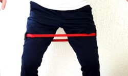 Para adaptar o sistema aos tornozelos você deve utilizar o fecho de velcro curto. Para adaptar à coxa acrescente a extensão de velcro que acompanha o conjunto. Como resultado, você pode fixar o anel elástico na altura desejada na região da coxa.