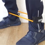 É comum que o elástico se desloque durante os treinos excêntricos de coxa e tornozelo. Por isso a Actual® criou este outro tipo de presilha, que contorna o membro, fixando o equipamento.