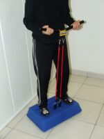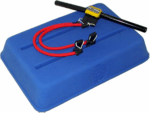O contato com o solo é através de quatro sapatas de plástico flexível, que tem ótima aderencia dando assim estabilidade ao equipamento durante a atividade.