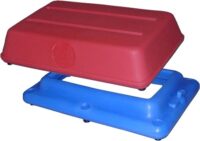 Sua forma é trapezoidal com as medidas (comprimento, largura) 59x40cm por 14cm de altura.