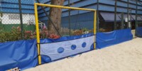 Os alvos têm espaço de passagem junto aos postes, na medida de 4 a 5 bolas de futebol de salão ou handball.